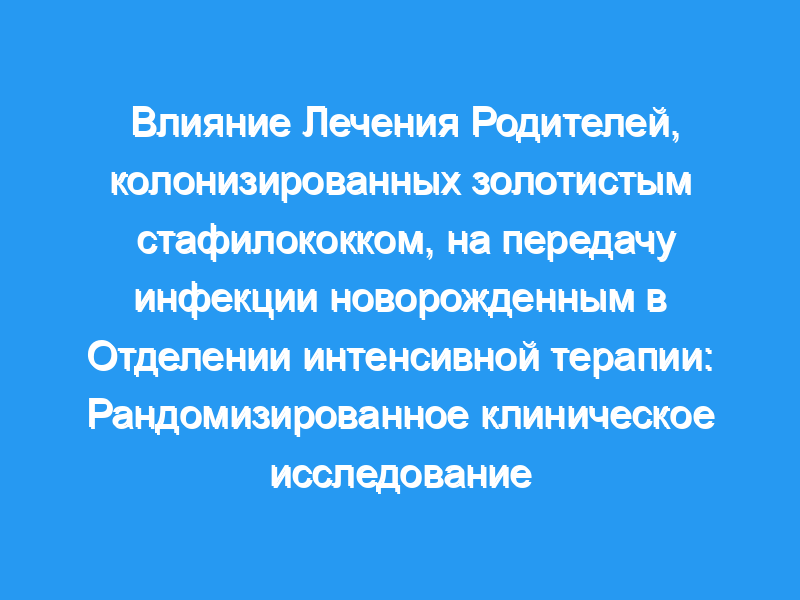 Чтобы проверить, уменьшит ли лечение родителей интраназальным введением мупироцина и местного хлоргексидина по сравнению с плацебо передачу золотистого стафилококка от родителей новорожденным. Дизайн, условия и участники: Двойное слепое рандомизированное клиническое исследование в 2 отделениях интенсивной терапии в Балтиморе, штат Мэриленд. В исследование были включены новорожденные (n = 236) с родителями, колонизированными золотистым стафилококком. Период исследования — с 7 ноября 2014 года по 13 декабря 2018 года. Вмешательства: Родителям были назначены интраназальные салфетки с мупироцином и 2% хлоргексидином (активное лечение, n = 117) или вазелиновая интраназальная мазь и немедикаментозные салфетки с мылом (плацебо, n = 119) в течение 5 дней. Основные результаты и меры: Первичной конечной точкой была согласованная колонизация S. aureus к 90 дням, определяемая как неонатальное приобретение штамма S. aureus, который был тем же штаммом, что и родительский штамм на момент скрининга. Вторичные исходы включали неонатальное заражение любым штаммом S. aureus и неонатальные инфекции S. aureus.