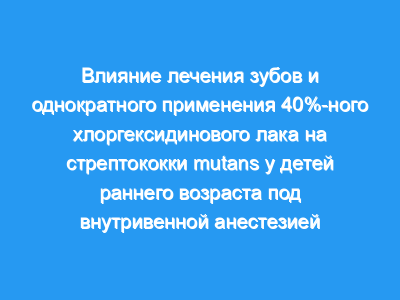 Целью этого исследования было определить влияние стоматологического лечения на уровень мутантных стрептококков (MS) и лактобацилл (LB) и дополнительный эффект однократного нанесения 40% хлоргексидинового лака (EC40) на уровень MS. Были отобраны двадцать три ребенка в возрасте до 5 лет, которым было назначено полное стоматологическое лечение.