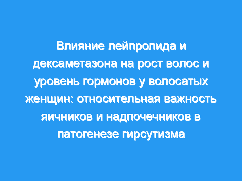 Темпы роста волос снизились на 37 +/- 6 % в PCO и по 14 +/- 10 % в IH (Р = 0,07). Изменение роста волос коррелировало с изменением уровня андростендиона (r = 0,66, P = 0,002), но незначительно с изменением уровня тестостерона (r = 0,29, P = 0,2). После добавления терапии дексаметазоном (0,5 мг в день) уровни тестостерона, андростендиона и DHEAS упали почти до или ниже пределов обнаружения анализом, в то время как Adiol-G снизился на 80 +/- 3 %. Темпы роста волос несколько больше снижались у женщин во время приема дексаметазона (46 +/- 6 %), чем при приеме плацебо (26 +/- 9 %, Р = 0,18). Таким образом, яичник был основным источником циркулирующего тестостерона и андростендиона при PCO. Надпочечники вносили значительную долю этих гормонов в PCO и были основным источником секреции андрогенов при IH. Гиперандрогения надпочечников была распространена как при IH, так и при PCO. Темпы роста волос лучше всего коррелировали с изменениями уровня андростендиона в сыворотке крови.