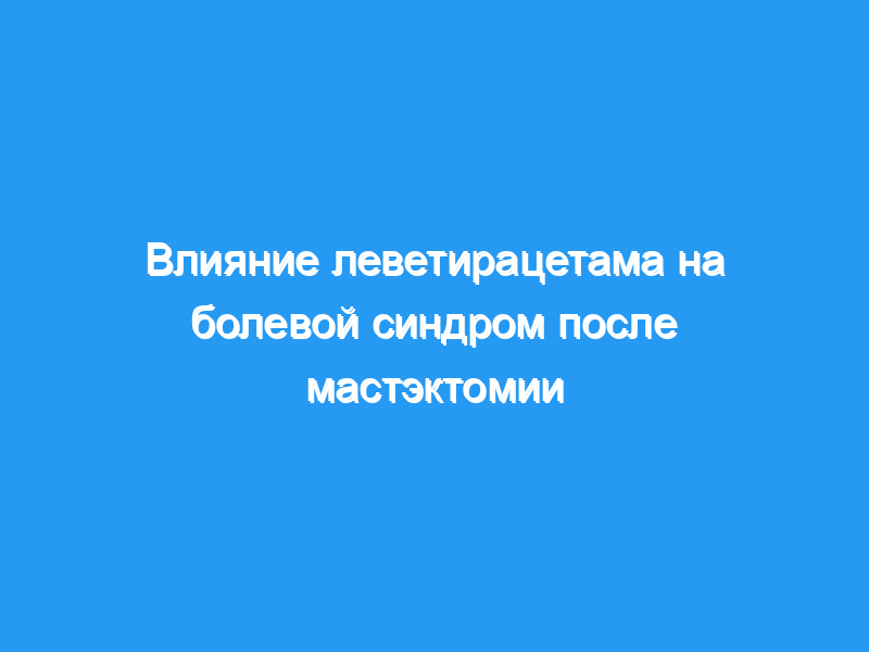 Предпосылки и цель: Целью этого рандомизированного двойного слепого плацебо-контролируемого перекрестного исследования было проверить, снимает ли леветирацетам болевой синдром после мастэктомии (PMPS).