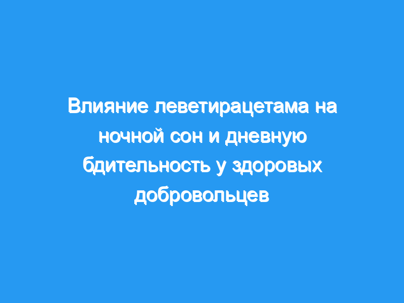 Люди с эпилепсией обычно жалуются на дневную сонливость, объясняемую нарушением сна (частые пробуждения, пробуждения и смены сцен), вызванным иктальной и интериктальной активностью или противоэпилептическими препаратами (АЭП) или и тем, и другим. Чтобы изучить влияние леветирацетама (ЛЕВ) на сон в полных дозах, но без вмешательства эпилепсии, мы исследовали архитектуру сна и дневную бдительность у здоровых взрослых после 3 недель лечения.