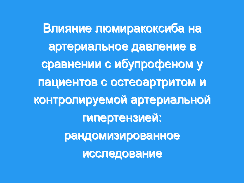 Нестероидные противовоспалительные препараты различаются по своему влиянию на артериальное давление, и влияние люмиракоксиба в дозе 100 мг один раз в день ранее не изучалось. Чтобы выяснить, приведет ли люмиракоксиб в дозе 100 мг один раз в день к снижению среднего систолического амбулаторного артериального давления за 24 часа, чем ибупрофен в дозе 600 мг три раза в день, у пациентов с остеоартритом с контролируемой артериальной гипертензией, было проведено 4-недельное рандомизированное двойное слепое параллельное групповое исследование в 79 центрах в девяти странах.