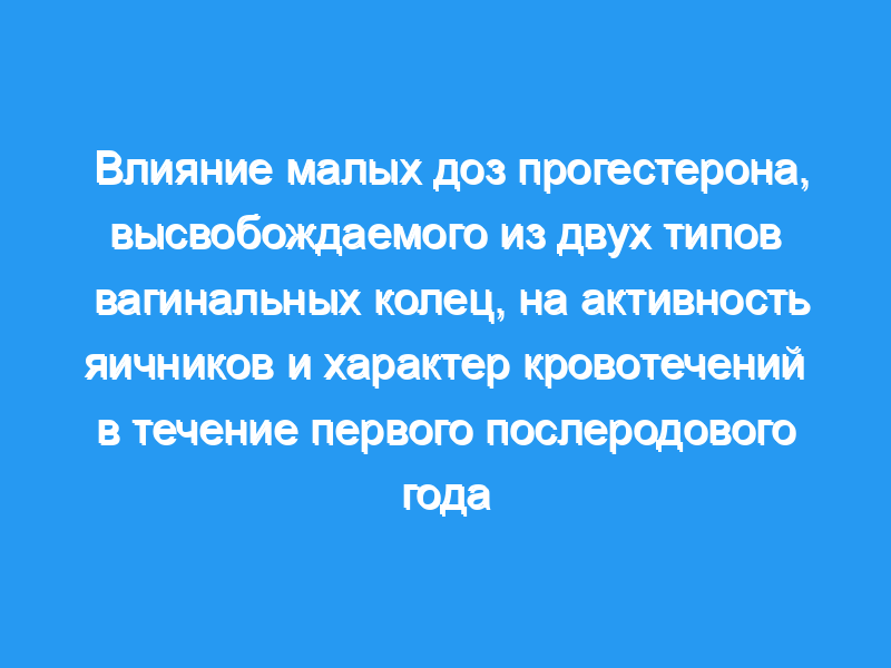 В общей сложности 20 кормящих женщин использовали вагинальные кольца, высвобождающие прогестерон, в течение 12 месяцев.