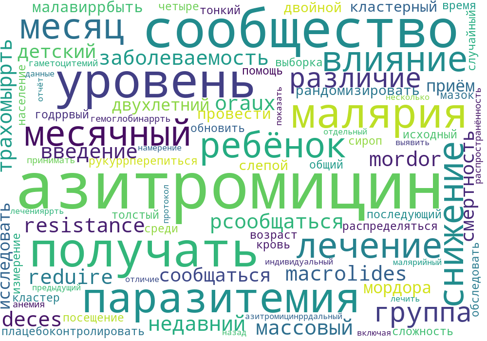 В анализе на уровне сообщества не было различий в распространенности паразитемии (на 1,0% ниже в сообществах, получавших азитромицин, 95% ДИ: от -8,2 до 6,1), гаметоцитемии (на 0,7% ниже в сообществах, получавших азитромицин, 95% ДИ: от -2,8 до 1,5) или анемии (на 1,7% ниже в сообществах, получавших азитромицин, 95% ДИ: от -8,1 до 4,6) между группами, принимавшими плацебо и азитромицин.