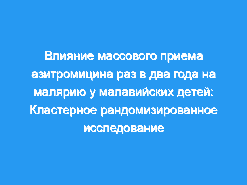 В недавнем исследовании Macrolides Oraux pour Reduire les Deces avec un Oeil sur la Resistance (MORDOR) сообщалось о снижении детской смертности после двухлетнего приема азитромицина MDA. Здесь мы исследуем влияние азитромицина MDA на малярию в исследовании sit в МОРДОРЕ и Малави.