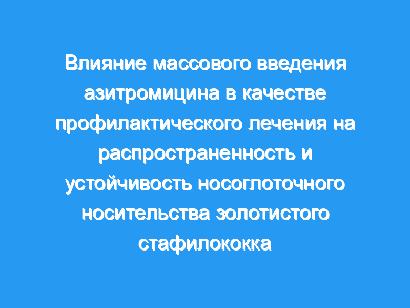 тем не менее, очень мало исследований о влиянии азитромицина на стафилококки были провести.р><р>в ходе клинических испытаний под принятые в 2016 году, носовые тампоны были собраны из 778 детей в возрасте от 3 до 59 месяцев, в том числе 385 детей, которые были смазаны перед применением азитромицина и плацебо и 393 после введения азитромицина или placeb.