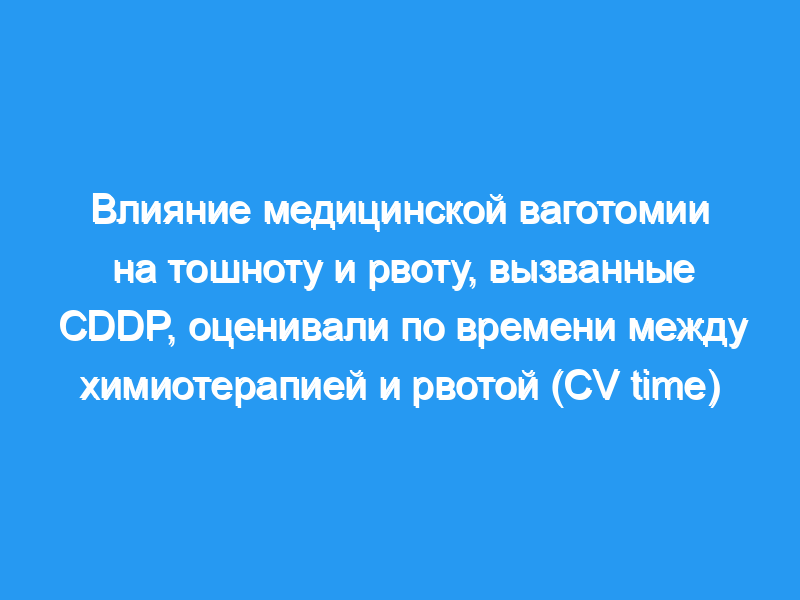 Время без рвоты после инъекции цисплатина (CV time) было статистически увеличено у пациентов с медицинской ваготомией (805 +/- 563 мин.) по сравнению с контролируемыми случаями (148 +/- 70 мин.) (р менее 0,01). Токсичность при медицинской ваготомии была незначительной, только умеренная гипотензия и помутнение зрения.