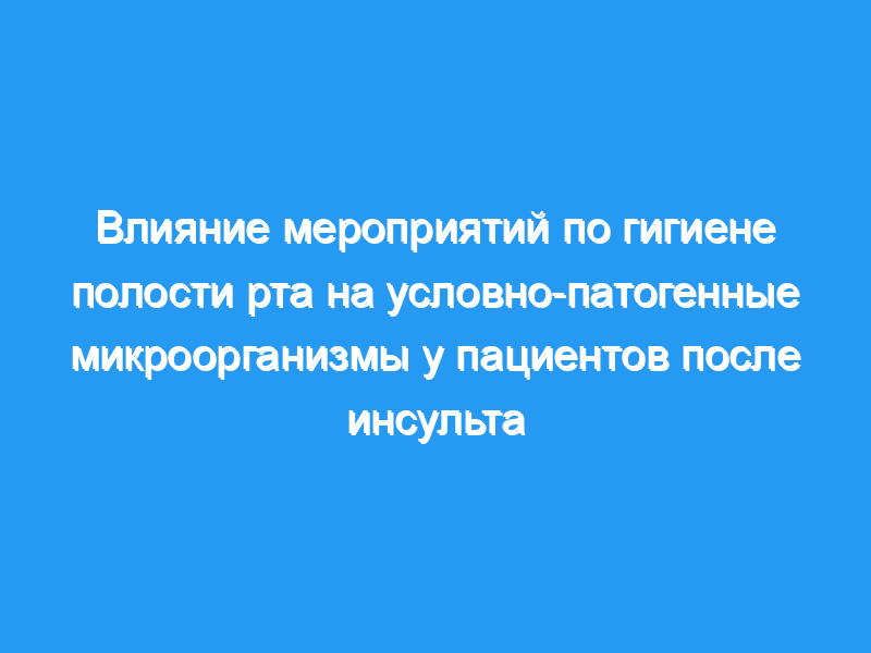 Несмотря на роль полости рта как резервуара условно-патогенных микроорганизмов для инфекции у пациентов после инсульта, оценка последствий мероприятий по гигиене полости рта в значительной степени игнорировалась.