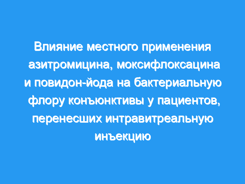 Сравнить влияние 5%-ного местного повидон-йода с профилактическим местным азитромицином и моксифлоксацином на бактериальную флору у пациентов, перенесших интравитреальную инъекцию.