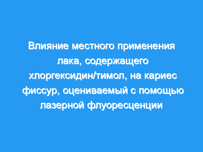 В заключение, результаты подтверждают предыдущие выводы о том, что частое нанесение зубного лака, содержащего хлоргексидин/тимол, может оказывать защитное действие. роль в трещинах молодых постоянных моляров и что это можно контролировать с помощью устройства LF для обнаружения кариеса на стуле.