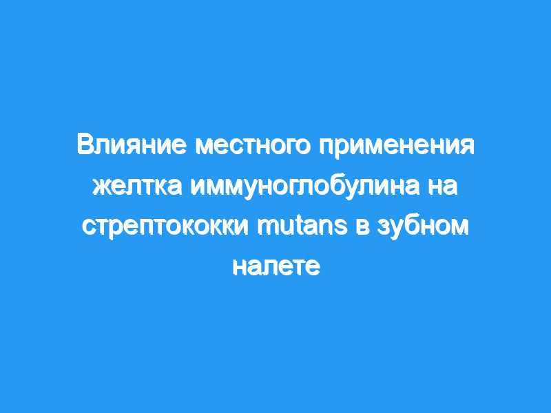 Результаты показывают, что иммунизация специфическим иммуноглобулином желтка против мутантных стрептококков может быть полезной для долгосрочного подавления колонизации мутантных стрептококков в зубном налете человека.