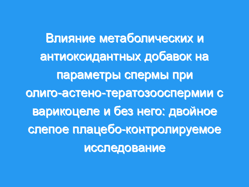 В этом моноцентрическом рандомизированном двойном слепом плацебо-контролируемом исследовании изучался эффект 6-месячного приема добавок с l-карнитином, ацетил-l-карнитином и другими микроэлементами. на качество спермы у 104 пациентов с олиго- и/или астено- и/или тератозооспермией с варикоцелом или без него.
