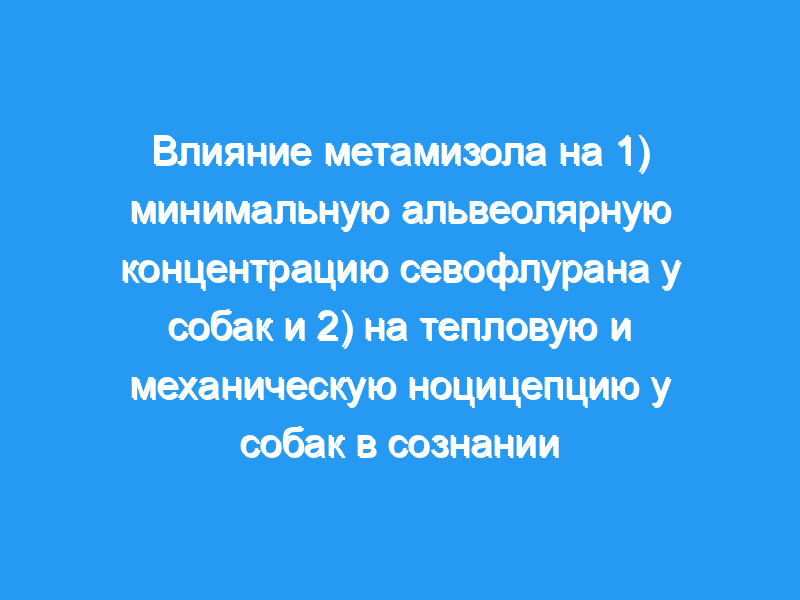 Определить острые антиноцицептивные и минимальные альвеолярные концентрации (ПДК), щадящие эффекты метамизола натрия моногидрата (дипирона) у собак для возможной периоперационной анальгезии. План исследования: Две группы из семи взрослых собак были использованы в двух отдельных рандомизированных, слепых, контролируемых перекрестных исследованиях. В каждом исследовании каждая собака получала метамизол в дозе 50 мг кг(-1) внутривенно (в/в) и плацебо (физиологический раствор 0,9%) внутривенно.