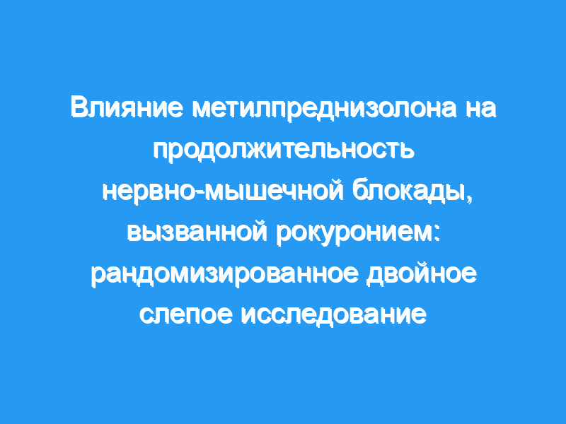 Было проведено двойное слепое рандомизированное плацебо-контролируемое исследование. В общей сложности 136 пациенток, перенесших гинекологическую лапароскопическую операцию, были случайным образом разделены на 3 группы: предгруппа, получавшая внутривенную инъекцию метилпреднизолона (40 мг) за 30 минут до введения анестезии, постгруппа, получавшая внутривенную инъекцию метилпреднизолона (40 мг) сразу после введения анестезии и интубации, и контрольная группа, получавшая внутривенную инъекцию из обычного физиологического раствора. Пациентам внутривенно вводили рокуроний в дозе 0,6 мг/кг, и изменения в приводящих мышцах, вызванные подергивающими реакциями, измеряли с помощью стимулятора локтевого нерва.