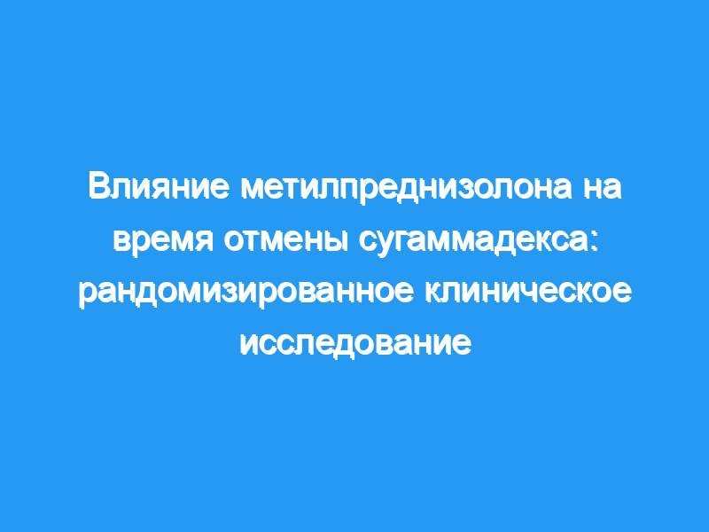 Предпосылки и цели: Сугаммадекс представляет собой модифицированный гамма-циклодекстрин, который устраняет эффекты аминостероидных нервно-мышечных блокаторов. Аналогичным образом, некоторые стероидные молекулы, такие как торемифен, фузидиновая кислота и флуклоксациллин, также могут быть инкапсулированы сугаммадексом. Метилпреднизолон, который является синтетическим стероидом, обычно используемым для профилактики отека дыхательных путей, также может быть инкапсулирован сугаммадексом. Целью этого исследования было сравнить время восстановления сугаммадекса для устранения вызванной рокуронием умеренной нервно-мышечной блокады у тех, кто получал интраоперационно 1 мг/кг-1 метилпреднизолона или физиологический раствор. Метод: В это одноцентровое, рандомизированное, контролируемое, проспективное исследование были включены 162 взрослых пациента, проходивших плановые процедуры уха, носа и горла (в возрасте от 18 до 65 лет, физический статус ASA I-II, ИМТ менее 30 кг/м2 и не принимавших стероидные препараты) с пропофолом, ремифентанилом, рокуроний и севофлуран. Нейромышечный мониторинг проводился с помощью калиброванной акселеромиографии. Контрольная группа (группа С) получала 5 мл физиологического раствора, в то время как группа метилпреднизолона (группа М) получала 1 мг/кг-1 метилпреднизолона в 5 мл физиологического раствора сразу после индукции. После завершения операции, что касается количества TOF, два спонтанно появились снова, и всем пациентам был введен сугаммадекс в дозе 2 мг/кг-1. Восстановление коэффициента TOF до 0,9 было зарегистрировано для обеих групп, и расчетное время восстановления для достижения коэффициента TOF (TOFr) 0,9 было основным результатом исследования.