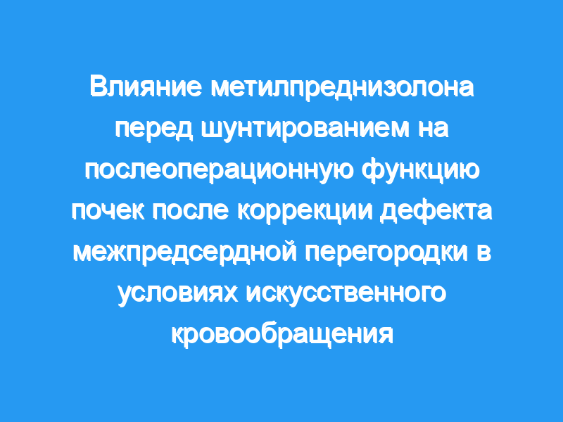 Применение метилпреднизолона перед шунтированием оказывает защитное действие на послеоперационную функцию почек после коррекции ASD при CPB.
