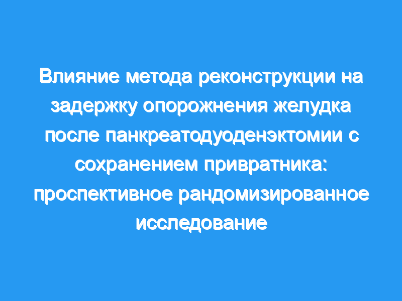 Пациенты, перенесшие PPPD в период с апреля 2007 по ноябрь 2009 года, были рандомизированы для антеколической или ретроколической реконструкции дуоденоеюностомии. Затем DGE оценивали по клиническим критериям на 10-й послеоперационный день (POD). Тест на абсорбцию парацетамола также проводили с жидкой пищей, и измеряли последовательные уровни кишечных пептидов в плазме крови.