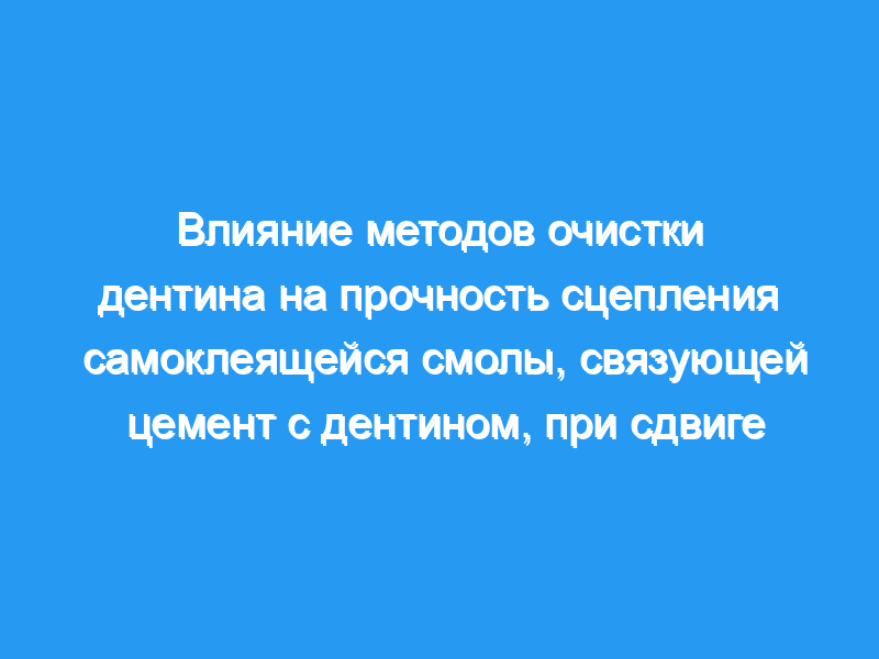 В этом исследовании in vitro оценивалось влияние различных методов очистки на прочность сцепления самоклеящегося цемента с дентином. Методы и материалы: в общей сложности 33 некариозных коренных зуба человека были разрезаны мезиодистально и погружены в химически отвержденную смолу так, чтобы щечные или язычные поверхности были обращены вверх. Поверхностный дентин обнажали, а временные реставрации из полимерного диска цементировали к поверхностям дентина неэугеноловым временным цементом и хранили в дистиллированной воде при 37°C. Через семь дней временные реставрации были удалены, и 13 образцов были случайным образом распределены по каждой из пяти групп (n=13) в соответствии со следующими очистительными процедурами: G1 — экскаватор (контроль), G2 — 0,12% диглюконат хлоргексидина, G3 — 40% полиакриловая кислота, G4 — смесь муки пемзой и водой, и G5-пескоструйная обработка частицами оксида алюминия 50 мкм при давлении 87 фунтов на квадратный дюйм. Полимерные композитные диски (Filtek Supreme Plus, 3M ESPE Dental Products, Сент-Пол, Миннесота, США) диаметром 4,7 (±0,1) мм и высотой 3,0 (±0,5) мм цементировали самоклеящимся цементом (RelyX Unicem, 3M ESPE), фотоотверждали и хранили в дистиллированной воде при 37°C в течение 24 часов. Испытание прочности соединения на сдвиг проводилось с использованием универсальной испытательной машины со скоростью траверсы 0,5 мм/мин до разрушения.