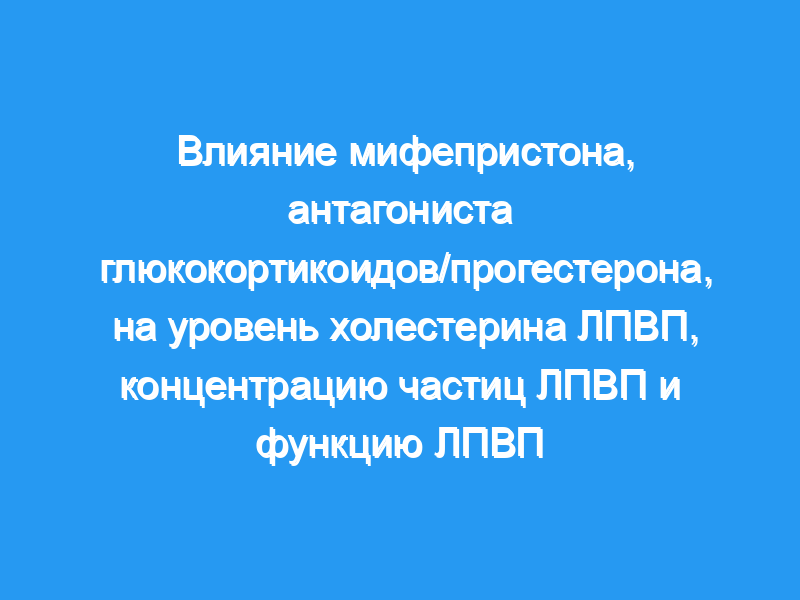 Целью исследования было охарактеризовать влияние введения мифепристона на концентрацию и функцию частиц ЛПВП. Дизайн и условия: Мы провели двойное слепое рандомизированное плацебо-контролируемое исследование в одном клиническом исследовательском центре. Участники: В исследовании приняли участие тридцать здоровых женщин-добровольцев в постменопаузе. Вмешательство: Пациенты были рандомизированы для ежедневного перорального приема мифепристона (600 мг) или плацебо в течение 6 недель. Основные показатели результата: Мы измерили уровень ХС ЛПВП, концентрацию частиц ЛПВП в сыворотке крови и опосредованный ЛПВП отток холестерина по группам лечения.