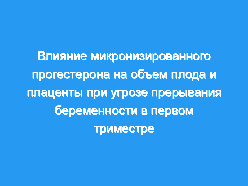 Сравнить влияние перорального микронизированного прогестерона (ОМП) на объем плода и плаценты в первом триместре беременности с использованием трехмерного ультразвукового исследования и компьютерного анализа расширенной визуализации виртуальных органов (XIII) при угрозе прерывания беременности.