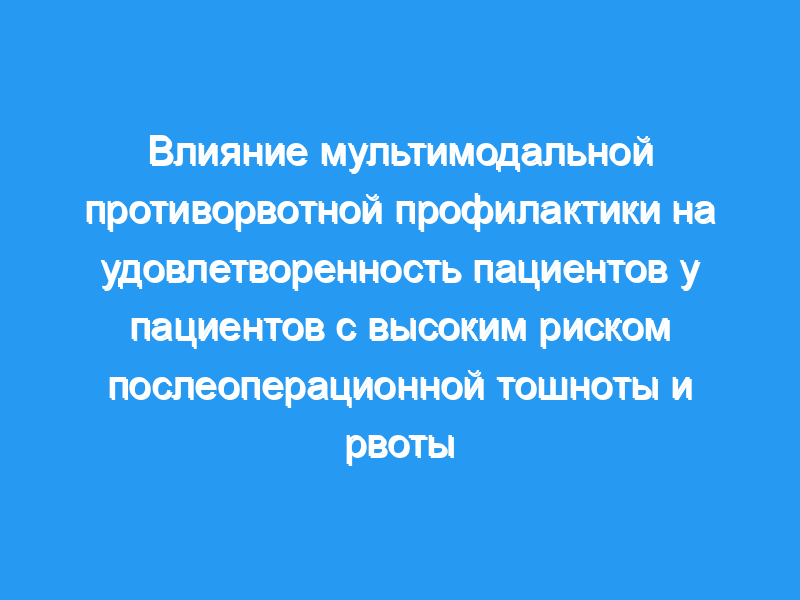 Мультимодальный противорвотный подход может значительно снизить частоту PONV у пациентов с высоким риском и связан с высокой удовлетворенностью пациентов, измеряемой методом готовности платить.