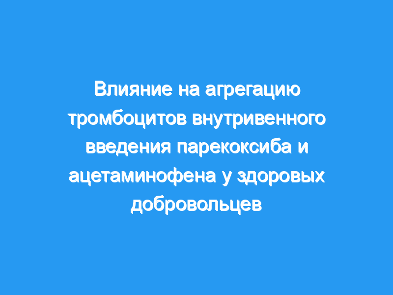 Ацетаминофен (парацетамол) отдельно или в комбинации с другими анальгетиками широко используется для послеоперационной анальгезии. В то время как ацетаминофен и нестероидные противовоспалительные препараты подавляют функцию тромбоцитов, циклооксигеназу-2 (ЦОГ-2), селективно ингибирующие коксибы, не оказывают влияния на функцию тромбоцитов. Авторы изучали влияние комбинации внутривенного введения парекоксиба и ацетаминофена на функцию тромбоцитов у здоровых добровольцев.