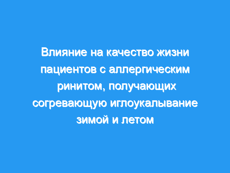 Чтобы изучить влияние на качество жизни и механизм эффекта у пациентов с аллергическим ринитом (АР), получавших теплую иглоукалывание зимой и летом.
