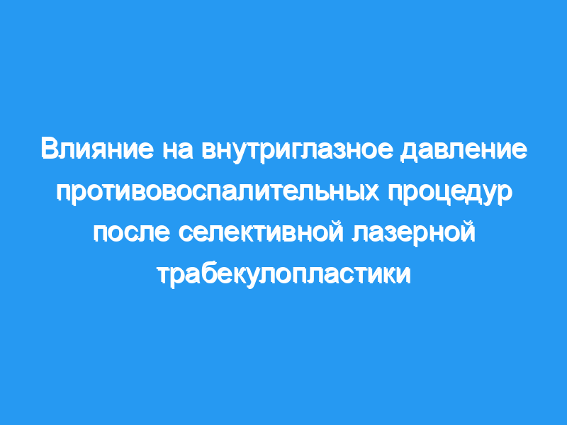Селективная лазерная трабекулопластика (SLT) является эффективной и безопасной процедурой для снижения внутриглазного давления (ВГД) при лечении открытоугольной глаукомы. Постлазерная воспалительная реакция может быть положительно связана с эффективностью SLT, и актуальность послеоперационного применения местных противовоспалительных средств остается спорной. Целью данного исследования является определение влияния различных противовоспалительных методов лечения на внутриглазное давление и на побочные эффекты после SLT.