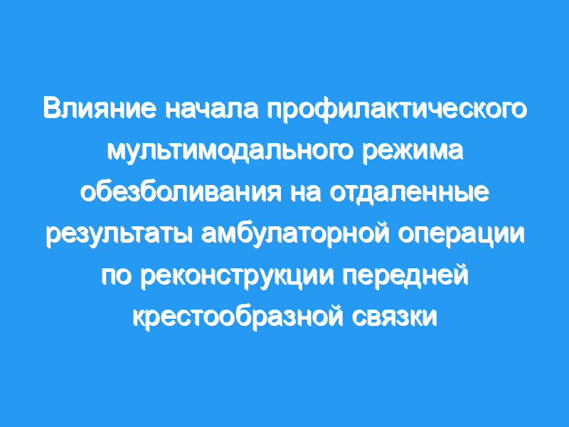 Непрекращающаяся послеоперационная боль может ухудшить реабилитацию, задержать выздоровление и привести к плохим результатам. Профилактические мультимодальные методы обезболивания могут улучшить отдаленные результаты после операции.