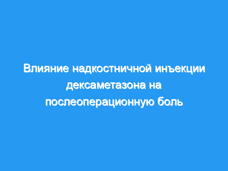 Однократная доза дексаметазона, инфильтрированная вокруг верхушки зуба с необратимым пульпитом, может быть эффективной для уменьшения или предотвращения послеоперационной эндодонтической боли в течение первых 24 часов.
