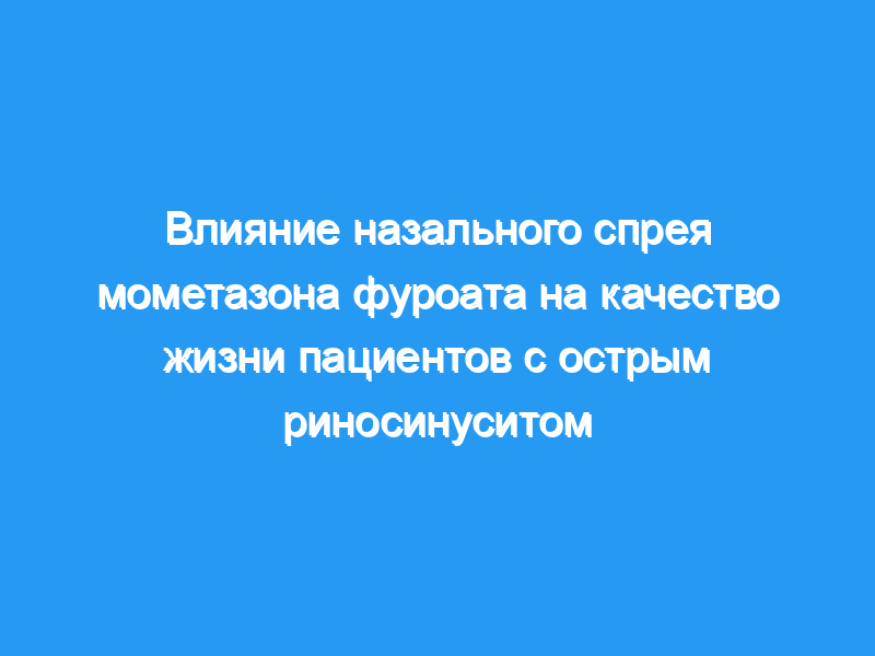 В этом исследовании оценивалось влияние назального спрея мометазона фуроата (MFNS) на качество жизни (HRQoL), связанное со здоровьем, у пациентов с острым неосложненным риносинуситом.