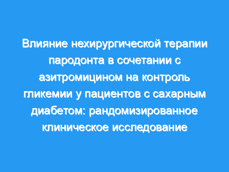 Сто пять пациентов были рандомизированы для получения нехирургической терапии плюс азитромицин (AZ-Sca =33), нехирургической терапии плюс плацебо (PB-Sca = 37) и супрагингивальной профилактики плюс азитромицин (AZ-Pro = 35). Гликированный гемоглобин, гликемию и параметры пародонта измеряли исходно, через 3, 6 и 9 месяцев после лечения.