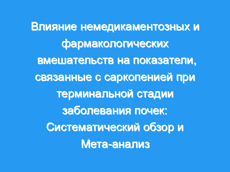 Этот систематический обзор и метаанализ представляют собой обобщение имеющихся фактических данных о влиянии вмешательств на показатели исхода, связанные с саркопенией при терминальной стадии заболевания почек (ESKD). Был проведен поиск по тринадцати базам данных, дополненный поиском в Интернете и вручную.