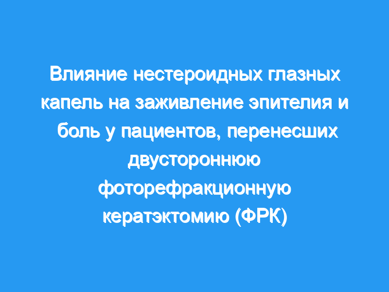 Настоящее исследование, которое было разработано как проспективное, двойное, рандомизированное, контролируемое, одиночное исследование, было проведено для сравнения эффектов 3 одобренных офтальмологических нестероидных противовоспалительных препаратов — офтальмологической суспензии непафенака 0,1% (Неванак, Alcon Laboratories, Inc., Форт-Уэрт, Текс), офтальмологический раствор кеторолака трометамина 0,4% (Acular LS, Allergan, Ирвин, Калифорния) и бромфенак 0,09% (Xibromtrade mark, ISTA Pharmaceuticals, Ирвин, Калифорния) — для реэпителизации роговицы и контроля послеоперационной боли у пациентов, перенесших фоторефракционную кератэктомию.