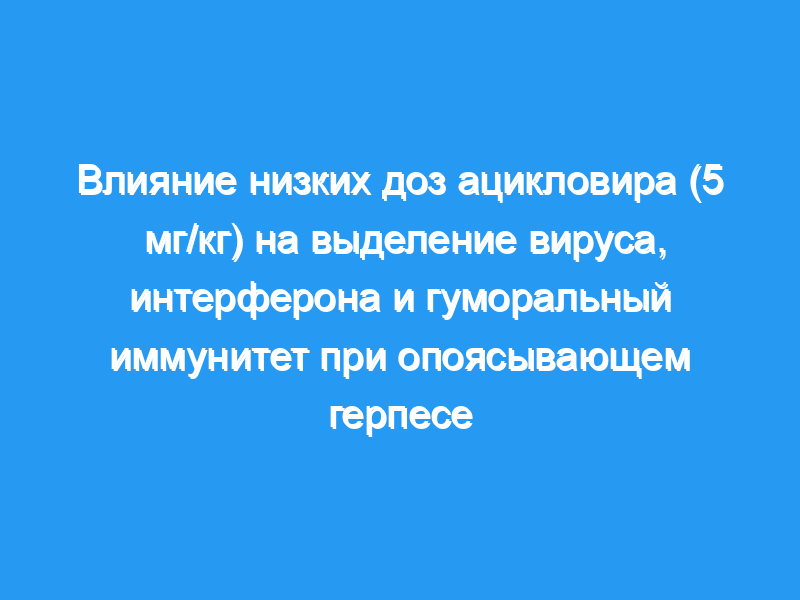 Уровни интерферона в жидкости пузырьков достигли пика значительно раньше (Р менее 0,025) и на более низком уровне у восьми пациентов, получавших лечение, по сравнению с восемью, получавшими плацебо, что соответствует значительно более раннему прекращению образования пузырьков в группе лечения (Р менее 0,05). Предварительно обработанные вирусные изоляты, протестированные на чувствительность к препарату, показали значения ED50 от 4 +/- 0.7 чтобы 17.5 +/- 1 микроМ ацикловир.