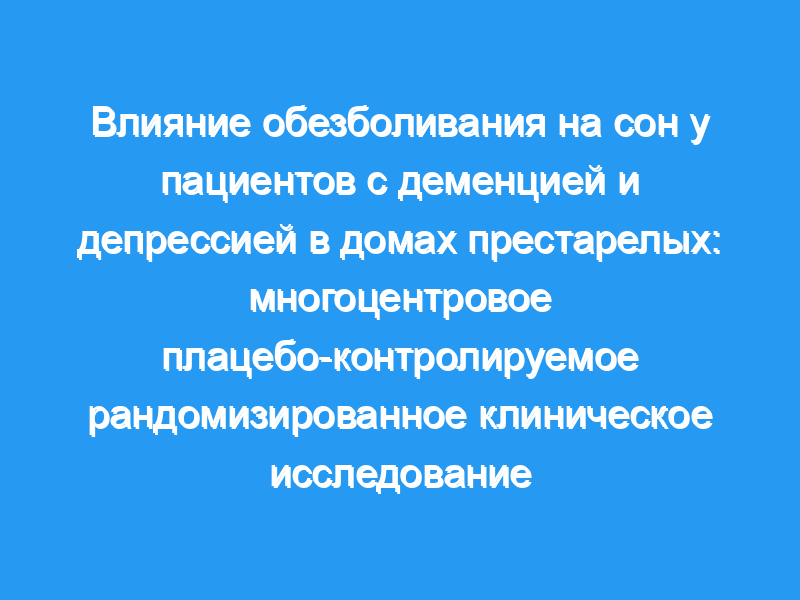 Изучить влияние обезболивания на сон у пациентов дома престарелых (NH) с деменцией и депрессией.