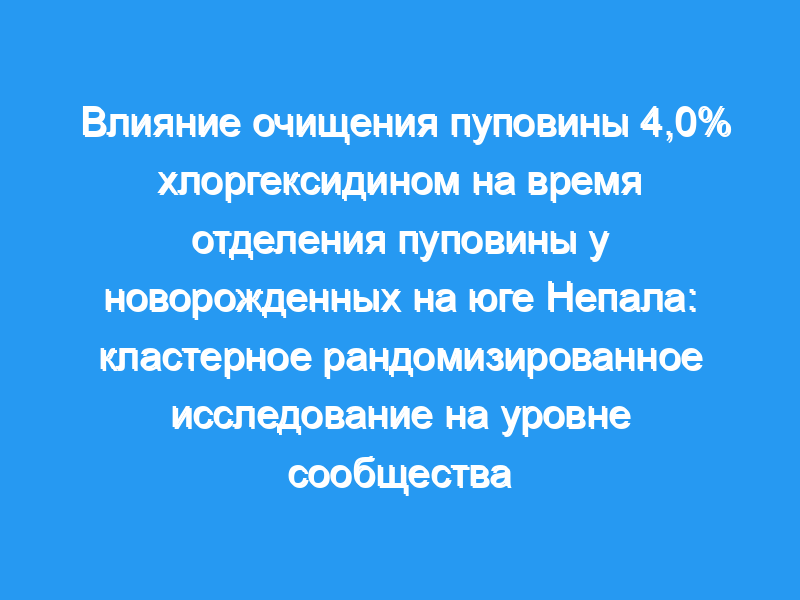 В период с ноября 2002 года по март 2005 года 15123 ребенка были случайным образом распределены по общинам на юге Непала для получения 1 из следующих 3 схем ухода за пуповиной: очищение 4,0% хлоргексидином, очищение водой с мылом или сухой уход за пуповиной. В группах вмешательства полевые работники очищали пуповину дома в течение нескольких дней 1, 2, 3, 4, 6, 8, и 10 после рождения. За новорожденными наблюдали в течение всего периода новорожденности на предмет признаков омфалита, и отмечали время до отделения пуповины. Время разделения сравнивалось между группами лечения. Риск заражения пуповиной и ряд характеристик младенцев и домашних хозяйств были оценены на предмет их взаимосвязи со временем разлучения.