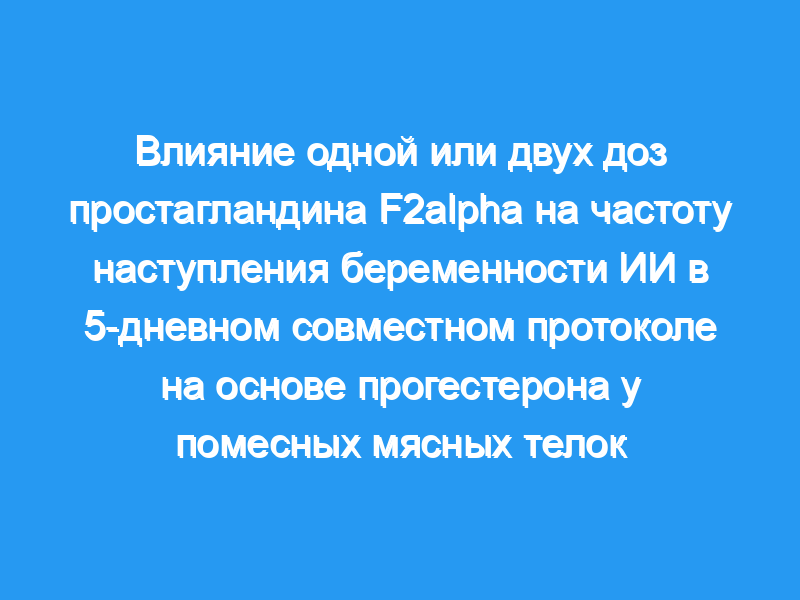 С учетом значимых переменных, таких как местоположение (P <, 0,01), телки в течке во время или до ИИ (P <, 0,001), и лечение взаимодействием местоположения (P & lt, 0,01), две дозы PGF на 5-й день, как правило, имели более высокие показатели беременности для своевременного ИИ по сравнению с теми, кто получал одну дозу PGF (P = 0,06). В заключение, у телок, получавших две дозы PGF при удалении CIDR на 5-й день по 5-дневному протоколу CIDR-CO-Synch, как правило, была более высокая частота наступления беременности, чем у тех, кто получал только одну дозу PGF.
