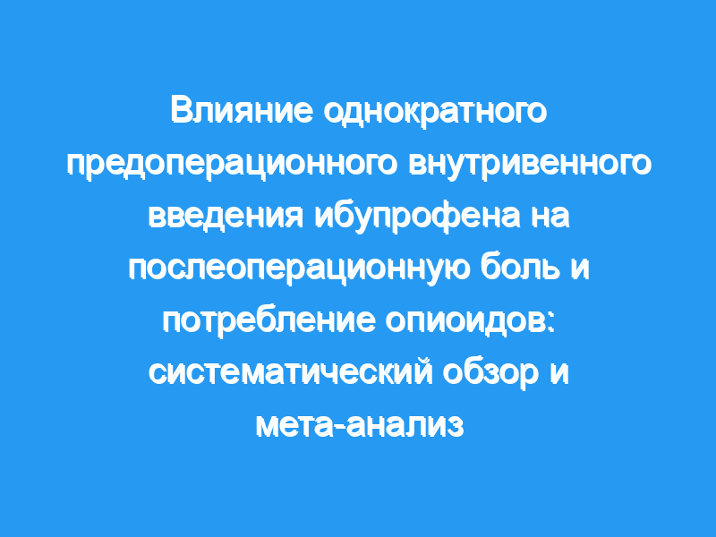 Ибупрофен, хорошо известный анальгетик, обычно используется в качестве компонента мультимодального обезболивающего подхода при послеоперационной боли. Этот систематический обзор и мета-анализ были направлены на изучение того, может ли однократное внутривенное введение ибупрофена перед операцией уменьшить послеоперационную боль и потребление опиоидов.