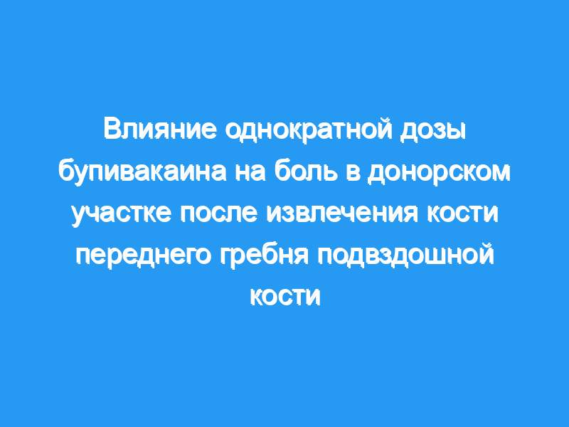 Для уменьшения боли в месте донора эффект однократной дозы бупивакаина (10 куб.см 2,5 мг/куб.см с адреналином 1:80.000) было проведено исследование.