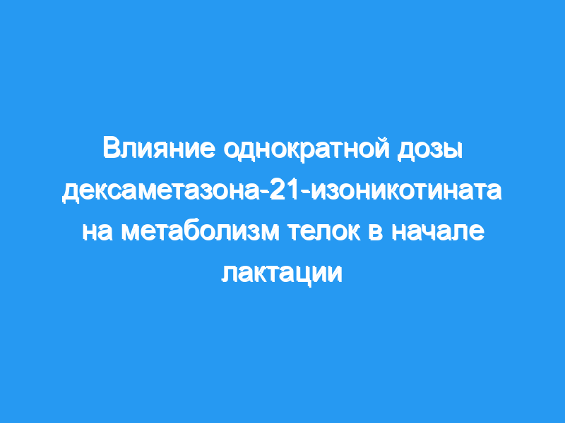 Восьми телкам шведской помеси, возрастом около двух с половиной лет, была введена однократная внутримышечная доза дексаметазона-21-изоникотината между девятью и 15 днями после отела, и восемь таких же телок остались без лечения.