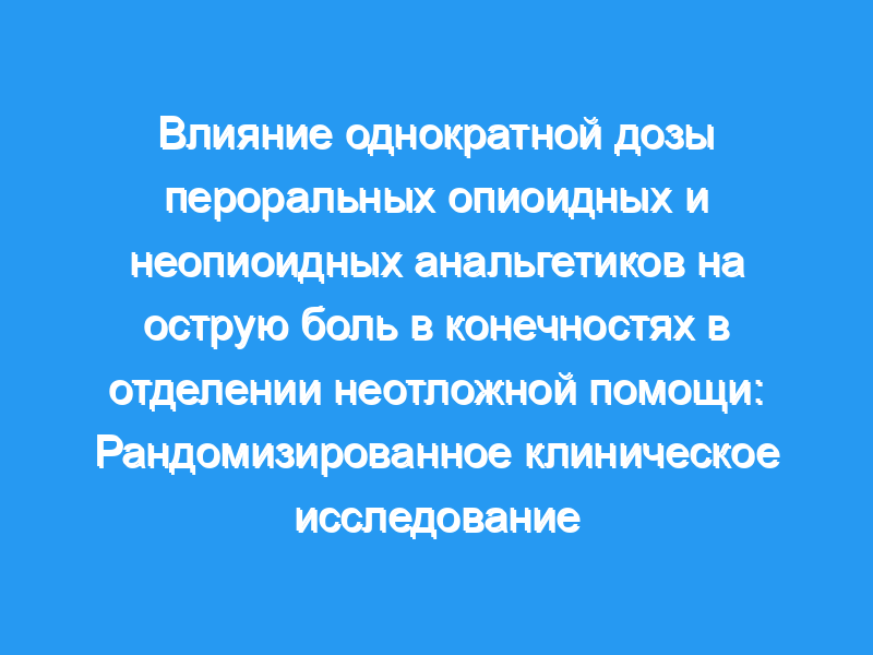 Из 416 рандомизированных пациентов были проанализированы 411 (средний возраст 37 [12] лет, 199 [48%] женщин, 247 [60%] латиноамериканцев). Базовый средний балл боли NRS составил 8,7 (SD, 1.3). Через 2 часа средний показатель боли NRS снизился на 4,3 (95% ДИ 3,6-4,9) в группе ибупрофена и ацетаминофена, на 4,4 (95% ДИ 3,7-5,0) в группе оксикодона и ацетаминофена, на 3,5 (95% ДИ 2,9-4,2) в группе гидрокодона. и группы ацетаминофена, и на 3,9 (95% ДИ 3,2-4,5) в группе кодеина и ацетаминофена (Р = 0,053). Наибольшая разница в снижении показателя боли NRS от исходного уровня до 2 часов была между группой оксикодона и ацетаминофена и группой гидрокодона и ацетаминофена (0,9, 99,2% ДИ, от -0,1 до 1,8), что было меньше минимальной клинически значимой разницы в балле боли NRS, равном 1,3. Побочных эффектов не наблюдалось. оценено. Выводы и актуальность: У пациентов, обратившихся в отделение неотложной помощи с острой болью в конечностях, не было статистически значимых или клинически значимых различий в уменьшении боли через 2 часа при однократном приеме ибупрофена и ацетаминофена или 3 различных комбинированных анальгетиков с опиоидами и ацетаминофеном. Могут потребоваться дальнейшие исследования для оценки побочных эффектов и других дозировок. Пробная регистрация: clinicaltrials.gov Идентификатор: NCT02455518.
