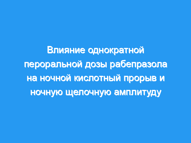 Изучить влияние рабепразола (RAB) на ночной кислотный прорыв (NAB) и ночную щелочную амплитуду (NAKA) и сравнить его с омепразолом (OME) и пантопразолом (PAN).