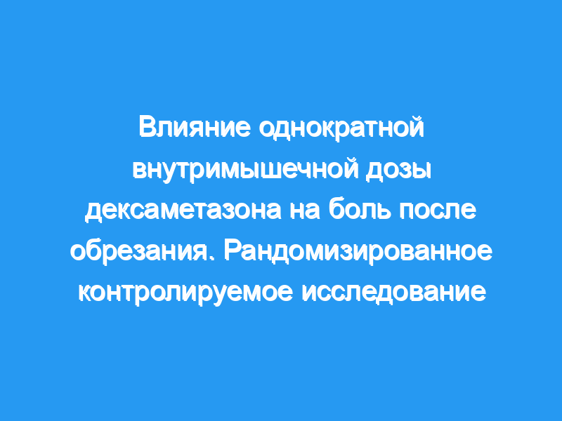 Оценить влияние предоперационной однократной дозы дексаметазона, связанной с блокадой полового члена, на боль после обрезания. Дизайн исследования: Проспективное рандомизированное контролируемое исследование. Пациенты и методы: Сорок детей мужского пола в возрасте от 2 до 5 лет, которым было запланировано обрезание под общей анестезией в сочетании с блокадой полового члена, были рандомизированы в две группы. Группа дексаметазона получала дексаметазон в дозе 0,4 мг/кг перед операцией. Контрольная группа получала тот же объем обычного физиологического раствора. Сравнивались данные между двумя группами: послеоперационная боль, оцененная по Объективной шкале боли, собранной в послеоперационной палате, через 8 и 24 часа после операции (h0, h8 и h24), время до первого запроса на обезболивание и качество сна в первую послеоперационную ночь.