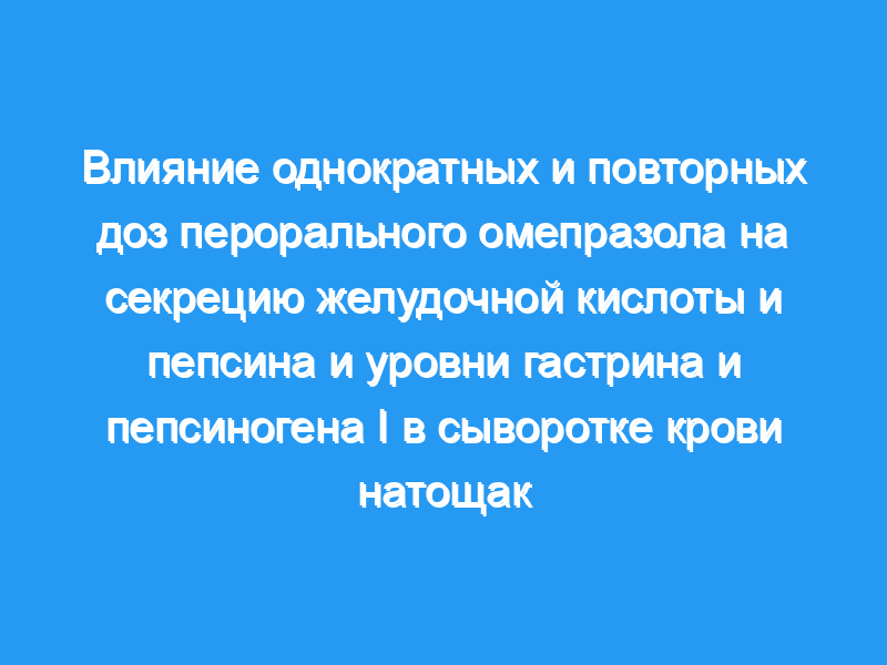 Влияние омепразола на секрецию желудочной кислоты и пепсина, а также уровни гастрина и пепсиногена I в сыворотке крови натощак изучали у 12 здоровых добровольцев.
