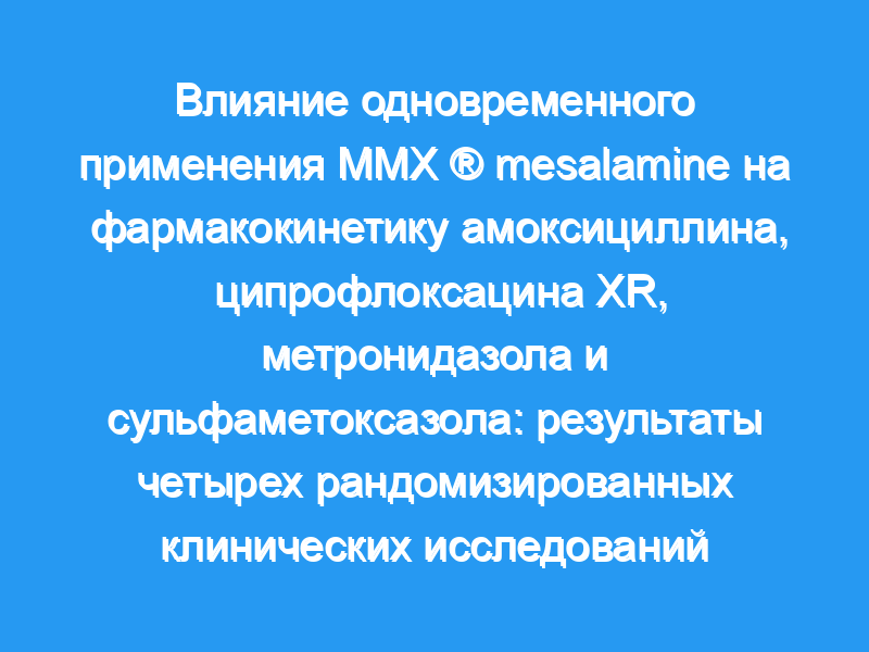 Во всех четырех исследованиях здоровые взрослые получали плацебо один раз в день или ММХ месаламина по 4,8 г один раз в день в 1-4-й дни в одной из двух последовательностей лечения. В исследованиях 1 и 2 субъекты также получали однократную дозу амоксициллина 500 мг (N=62) или ципрофлоксацина XR 500 мг (N=30) на 4-й день. В исследованиях 3 и 4 испытуемые получали метронидазол в дозе 750 мг два раза в день в дни 1-3 и один раз в день 4 (N=30) или сульфаметоксазол в дозе 800 мг/триметоприм в дозе 160 мг два раза в день в дни 1-3 и один раз в день 4 (N=44).
