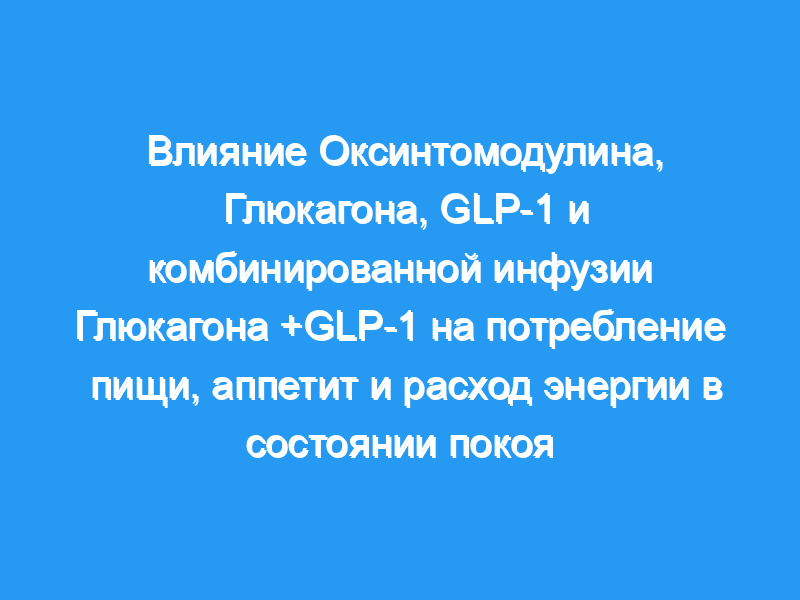 Исследование проводилось в специализированном исследовательском подразделении. Участники: Пятнадцать молодых здоровых добровольцев мужского пола (в возрасте 22 [диапазон 18-32] лет, индекс массы тела 23 [21-26] кг/м (2), уровень глюкозы в плазме натощак 5,1 [4,4-5,4] ммоль/л и гликированный гемоглобин A1c 40 (37-42) ммоль/моль). Вмешательства: Пять 4-часовых тестов на жидкую пищу во время инфузии физиологического раствора, GLP-1 (1 пмоль × кг(-1) × мин(-1)), глюкагон (0,86 пмоль × кг(-1) × мин(-1)), оксинтомодулин (3 пмоль × кг(-1) × мин(-1)), или глюкагон+GLP-1 (те же дозы). Основные показатели результатов: Мы оценивали расход энергии в состоянии покоя (измеряемый как поглощение кислорода, опорожнение желудка (GE), сводные показатели аппетита (CAS) и потребление пищи.