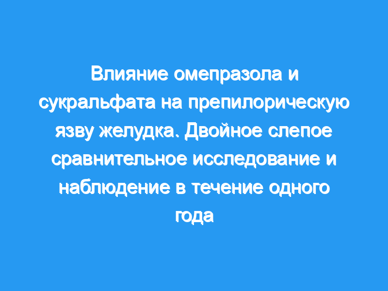 В этом исследовании сравнивались показатели заживления, облегчения симптомов, частоты нежелательных явлений и доля пациентов в ремиссии после годичного наблюдения у 104 пациентов с активной язвой препилорического отдела желудка во время лечения 40 мг омепразола один раз в день или 2 г сукральфата два раза в день с использованием рандомизированного двойного слепого контролируемого исследования tria.