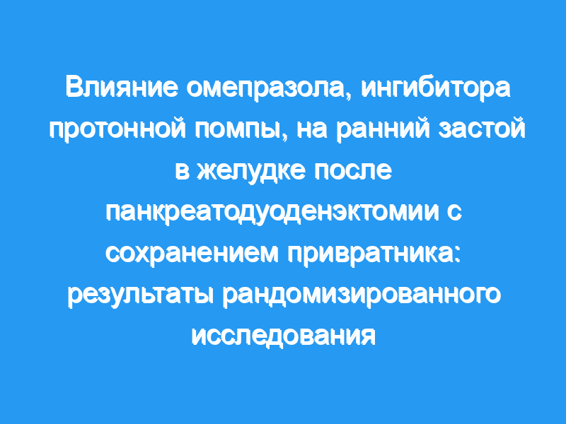Определить влияние омепразола, ингибитора протонной помпы (ИППН), на желудочный застой после панкреатико-дуоденэктомии с сохранением привратника (ПППД) с помощью рандомизированного исследования пациентов с ПППД. Методология: Сорок два пациента с ИППП были случайным образом разделены на две группы: группа 1 (n=24) получала ИППП через тощую кишку после ИППП, тогда как группа 2 (n=18), служившая контролем, получала физиологический раствор через тощую кишку и никаких лекарств после ИППП. Ежедневный объем и общую кислотность желудочного сока, аспирируемого через назогастральный зонд, измеряли каждый день в течение 7 дней после PPPD.