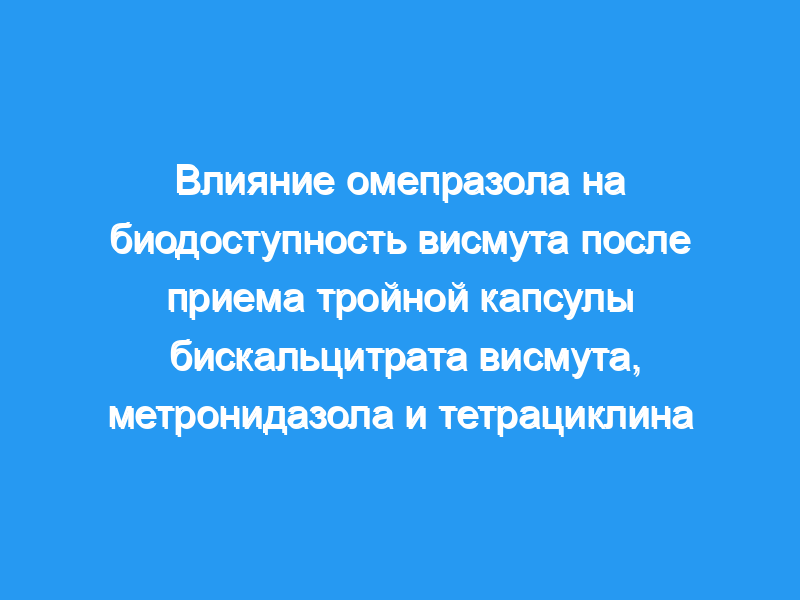 Целью данного исследования было определить влияние омепразола на биодоступность висмута (Bi) при приеме в капсуле «три в одном», содержащей бискальцитрат висмута, метронидазол и тетрациклин.